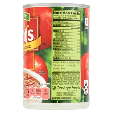 Visit our site for complete nutrition facts for this item and 150000 additional foods. Hunts organic tomato sauce nutrition fact information nutrition label ingredients and nutrition information and all about hunts organic tomato sauce product informations toggle navigation beverages. Nutritional summary of hunts tomato sauce.