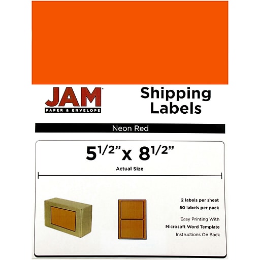 Jam Paper Shipping Labels Half Sheet 5 5 X 8 5 Neon Red 50 Pack
